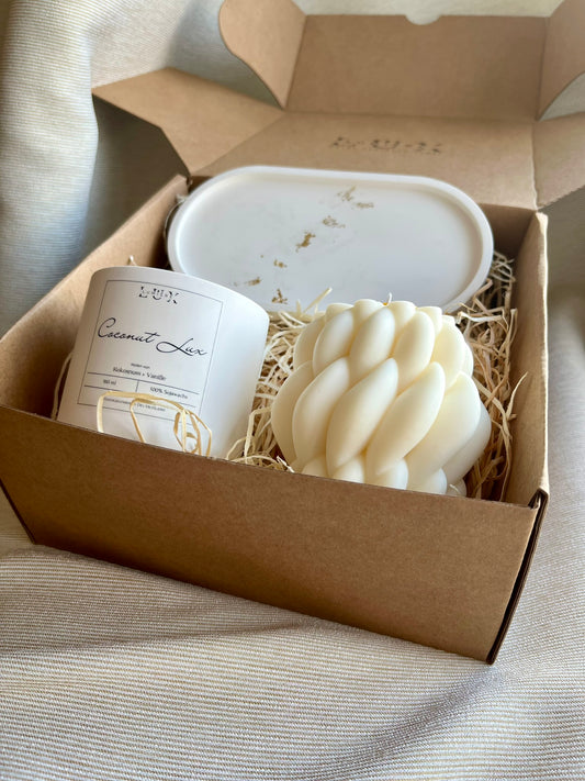 Dein Individuelles Kerzenset - Gold Tablett / Coconut Lux / Braid