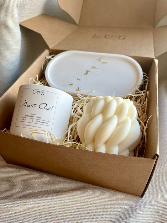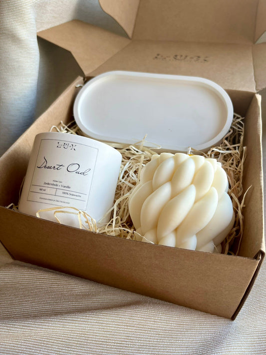 Dein Individuelles Kerzenset - Weißes Tablett / Desert Oud / Braid - Personalisiert -