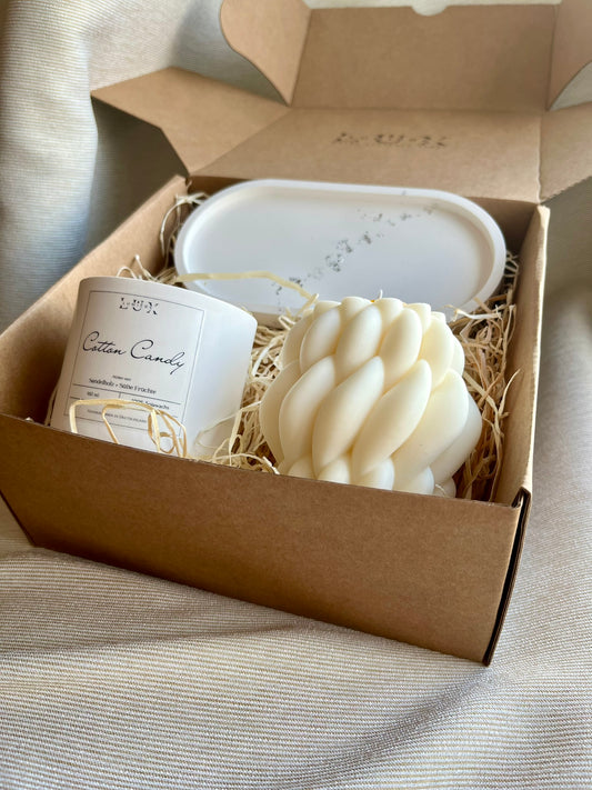 Dein Individuelles Kerzenset - Weißes Tablett / Cotton Candy / Braid