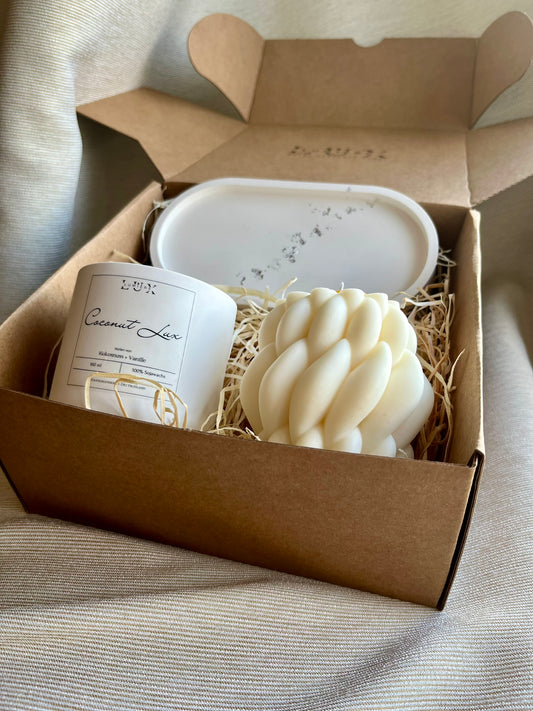 Dein Individuelles Kerzenset - Weißes Tablett / Coconut Lux / Braid