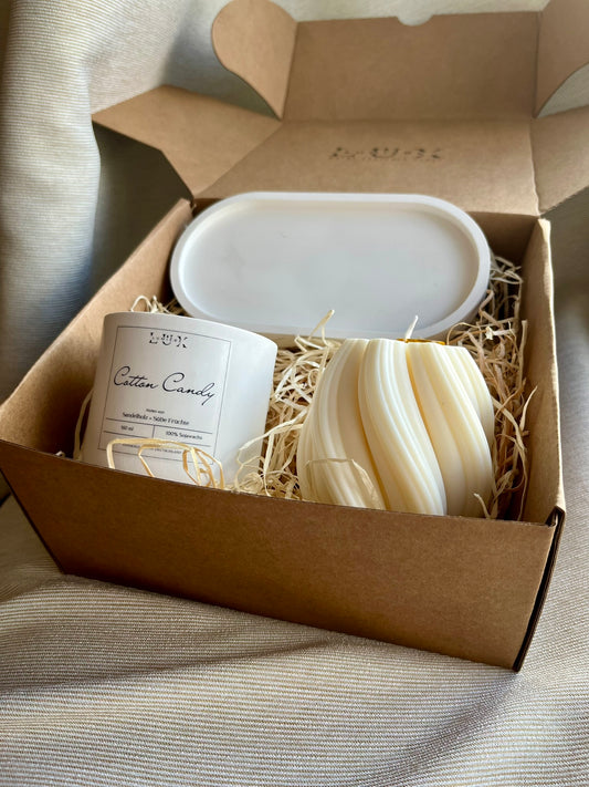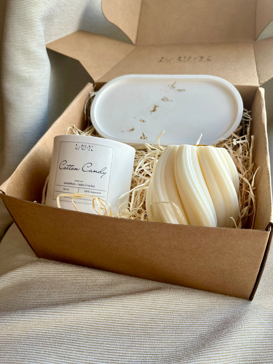Dein Individuelles Kerzenset - Weißes Tablett / Cotton Candy / Swirl