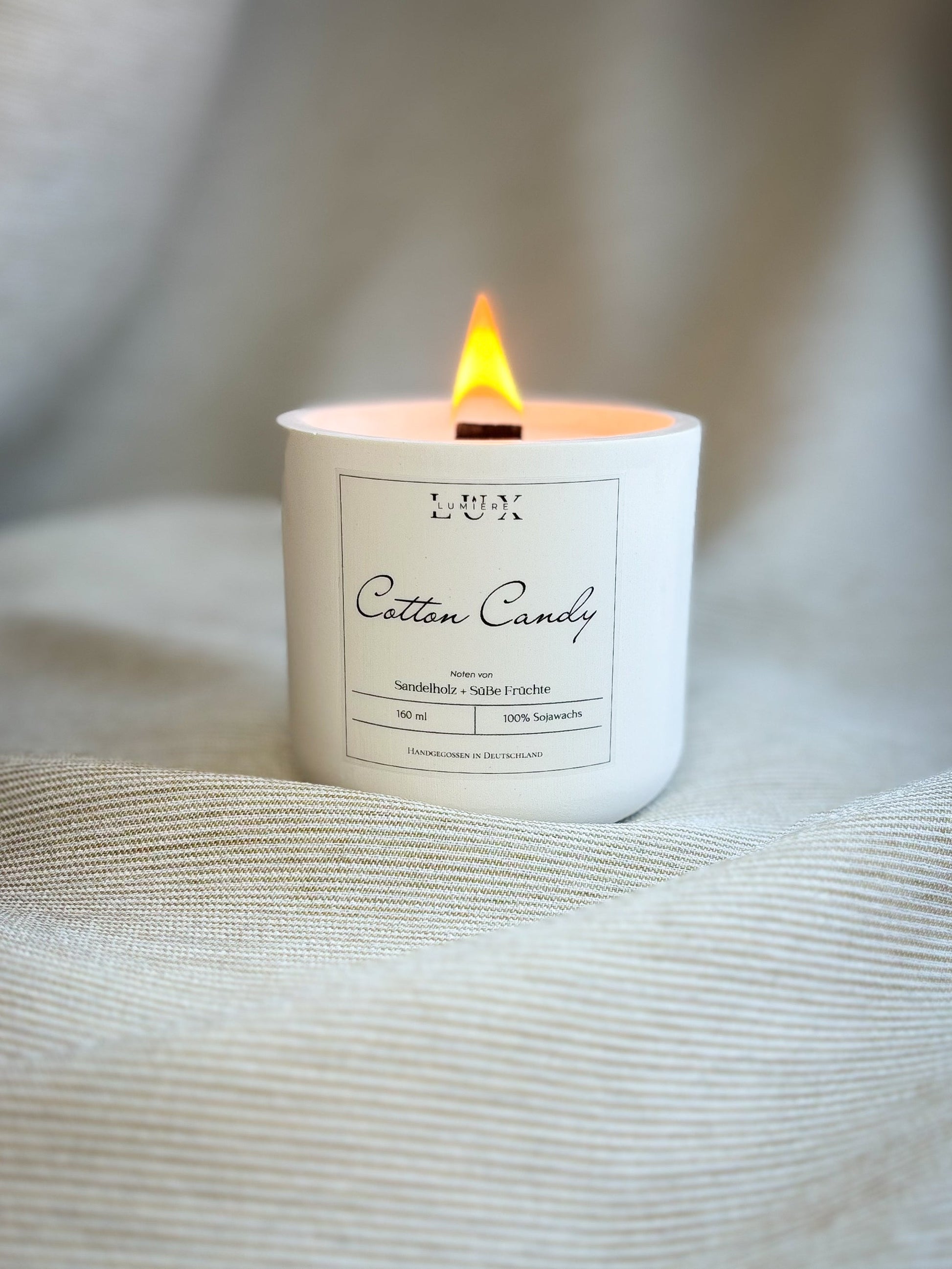 Mit einer Auswahl an hochwertigen Kerzen auf einem eleganten, reinweißen Tablett und dem herrlichen Duft von der Aromakerze "Cotton Candy" und der Formkerze "Braid", ist dieses, mit viel Liebe verpacktes Geschenkeset, perfekt für jeden Anlass.